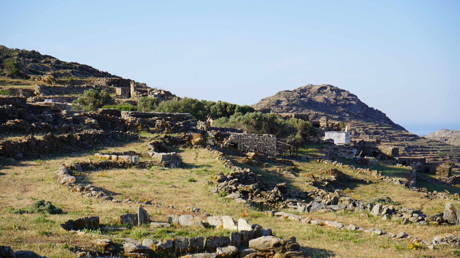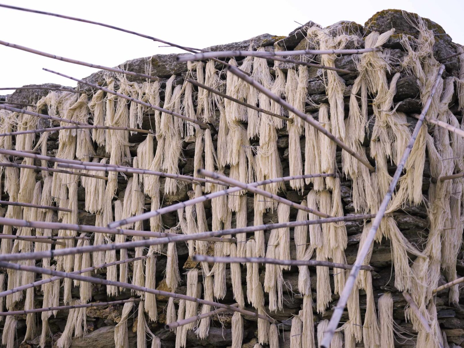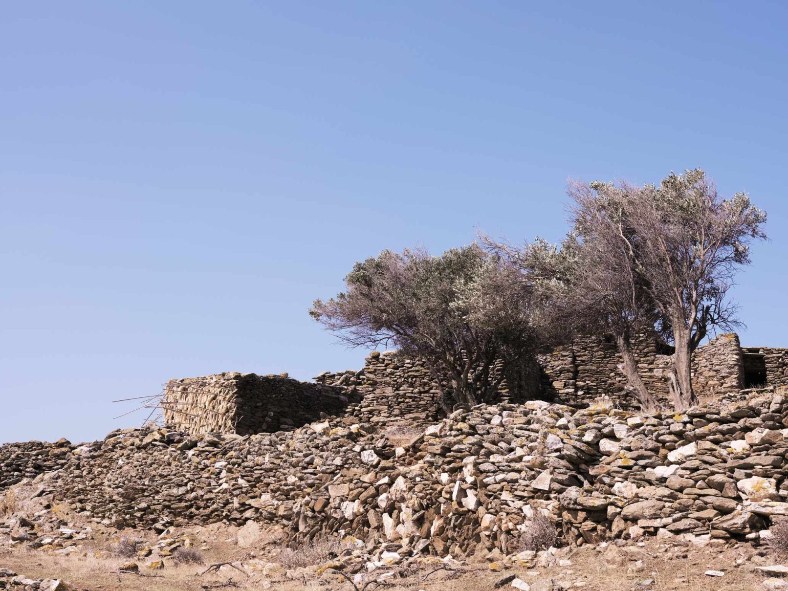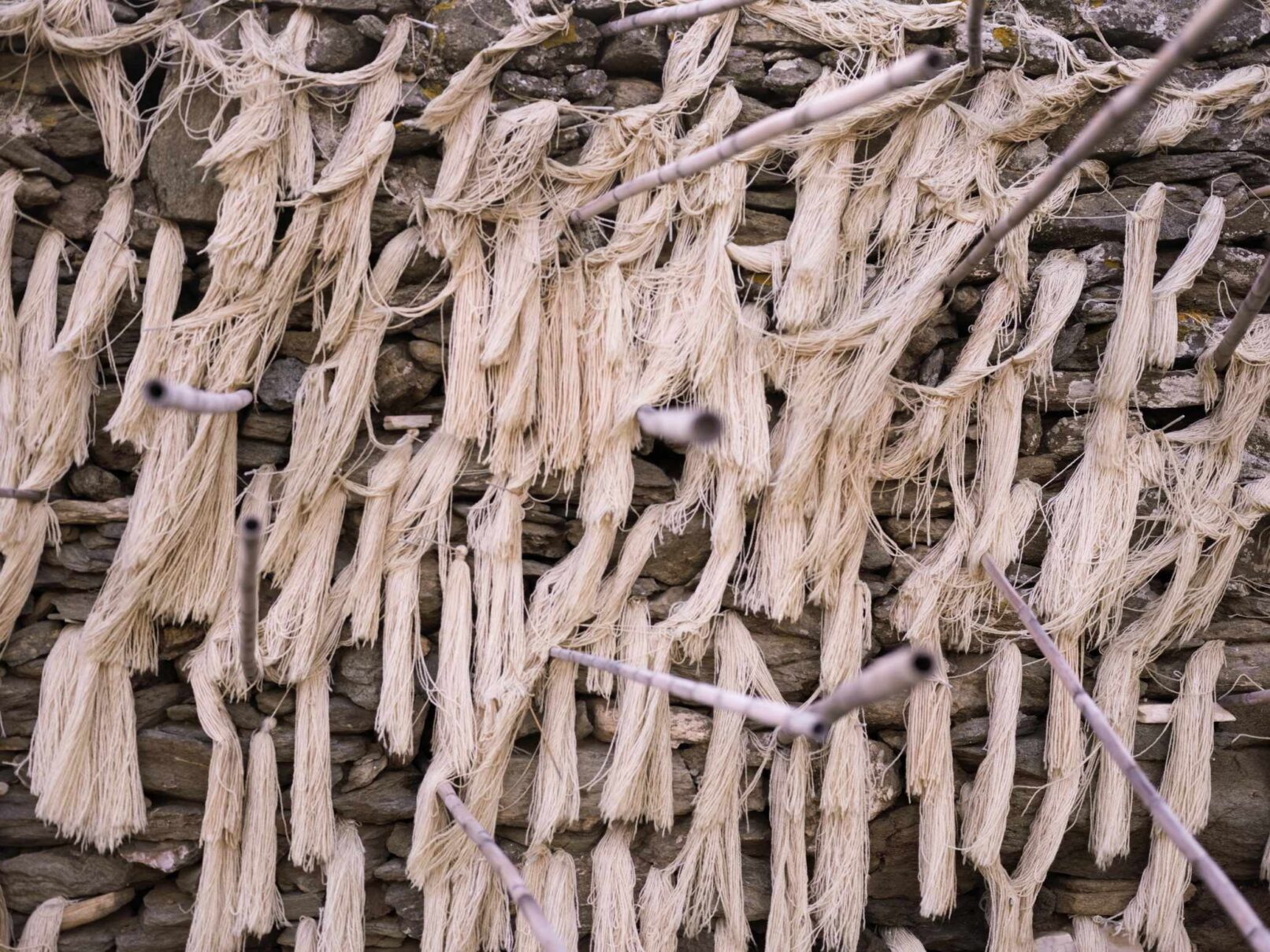 Α hybrid sculptural structure consisting of marble, stone, wood and thread, textures, and building methods used in the local structures will lead Maro to explore the traditional architecture and weaving art found on the island of Tinos. On the one hand, architecture is in line with the traditional consensus of the male architect (builder), and on the other hand, the female weaver takes over the interior (building) with textiles. A review of traditional art in terms of the practice itself brings to the surface relations between tangible practices, work, and gender.